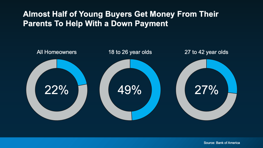 According to Bank of America49% of buyers between 18 and 26 got money from their parents to use toward their down payment (see chart below):