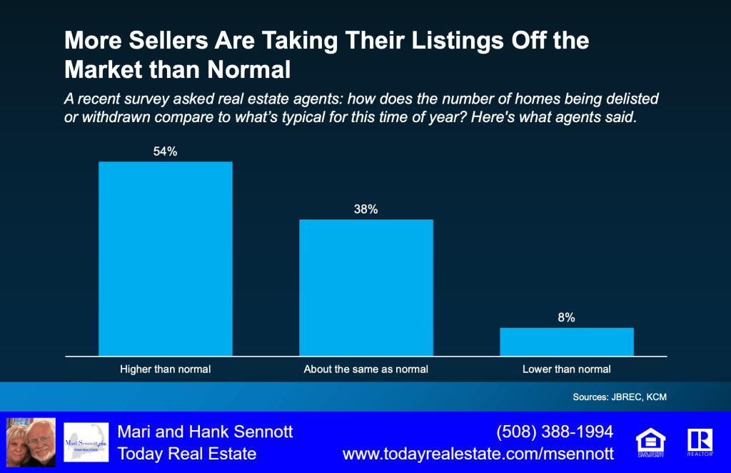 In a recent survey from John Burns Research and Consulting (JBREC) and Keeping Current Matters (KCM) over half of agents (54%) say there are more homes being taken off the market than usual.